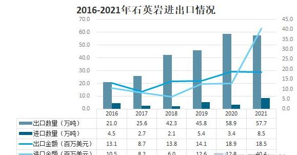 2016-2021年石英進出口情況